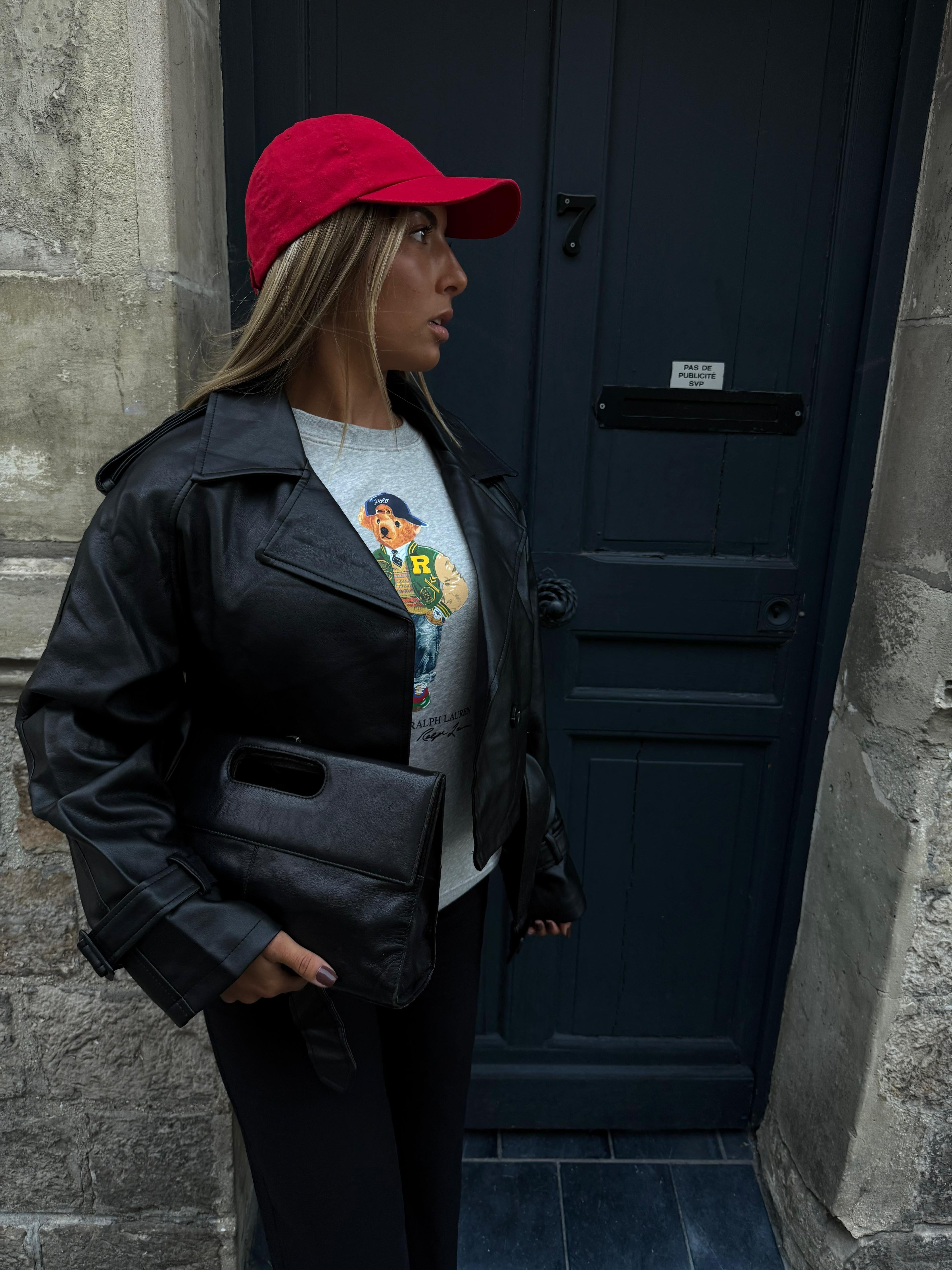 Trench noir en PU avec ceinture à la taille et aux poignets pour un ajustement parfait. Composition : 100%...